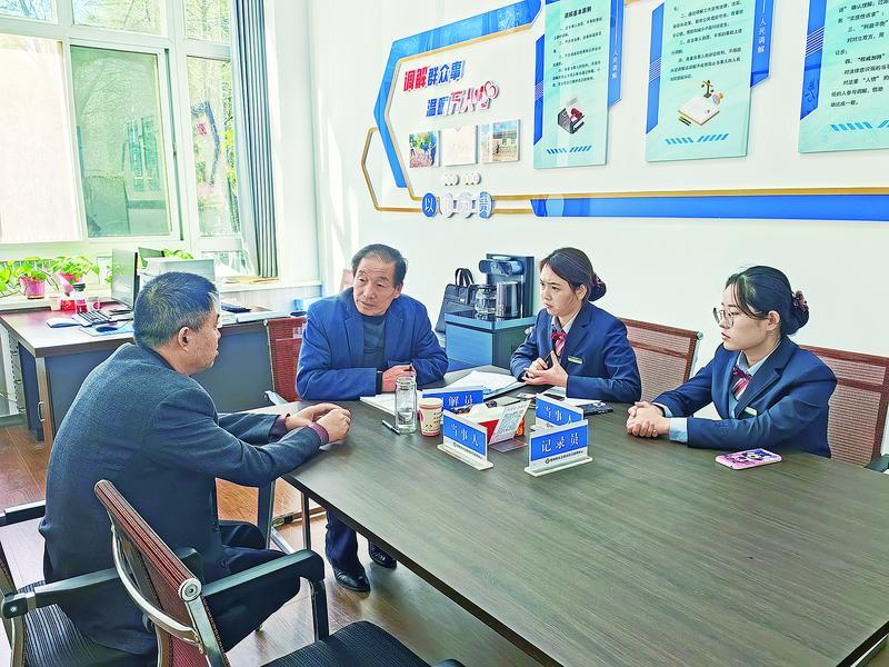 鎮(zhèn)原縣司法部門工作人員面對(duì)面調(diào)解群眾矛盾糾紛。